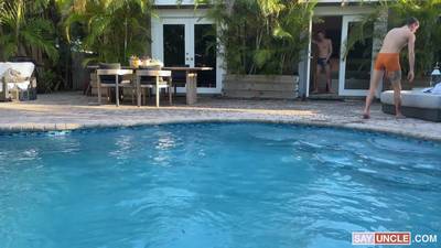Two horny twinks, Jayden Pierce and Johnny Hunter share some sexy time by the pool, before heading into the bedroom to fuck!