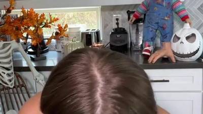 A teen with large natural breasts, undresses in her own kitchen and shows off her naughty masturbation with her favorite dildo!