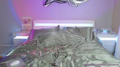 Skinny girl with long brunette hair and a perfect naked body, masturbates with a pink sex toy, solo.