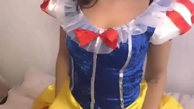 Sexy girl dressed as Snow White, is missing her seven dwarfs, so she masturbates her shaved pussy, solo.