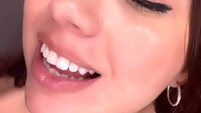 Brunette with glasses, will suck her dildo, remove her clothes and shove her sex toy, inside her pussy.