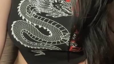 The busty naked girl, caresses her shaved pussy in front of the camera and shows off, her big ass.