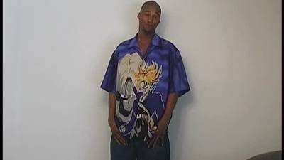 Shay, a hung black man, strokes his big black cock until he ejaculates all over a mirror.