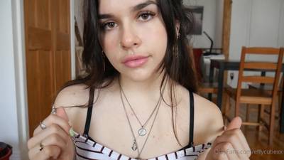 The pretty brunette, puts on stockings and sexy lingerie and shows how she caresses her pussy and big breasts, in front of the camera, especially for you!