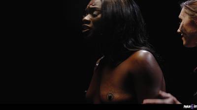 Black Ana Foxx and her white mistress Maya Woulfe give each other a cunt licking. Wearing sexy lingerie, they both want to give each other an orgasm.