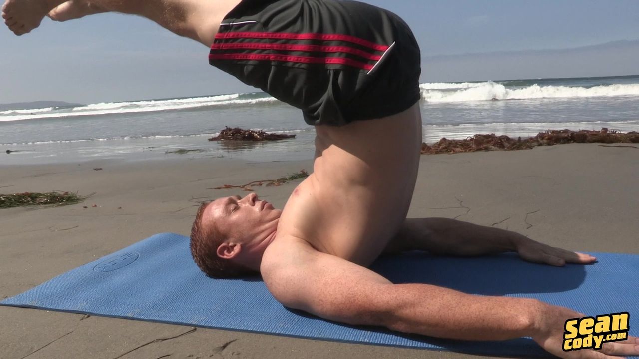 Colt touches his chest, while he jerks off his dick, all over the kitchen counter. After some yoga at the beach, he jerks off again, for our pleasure.