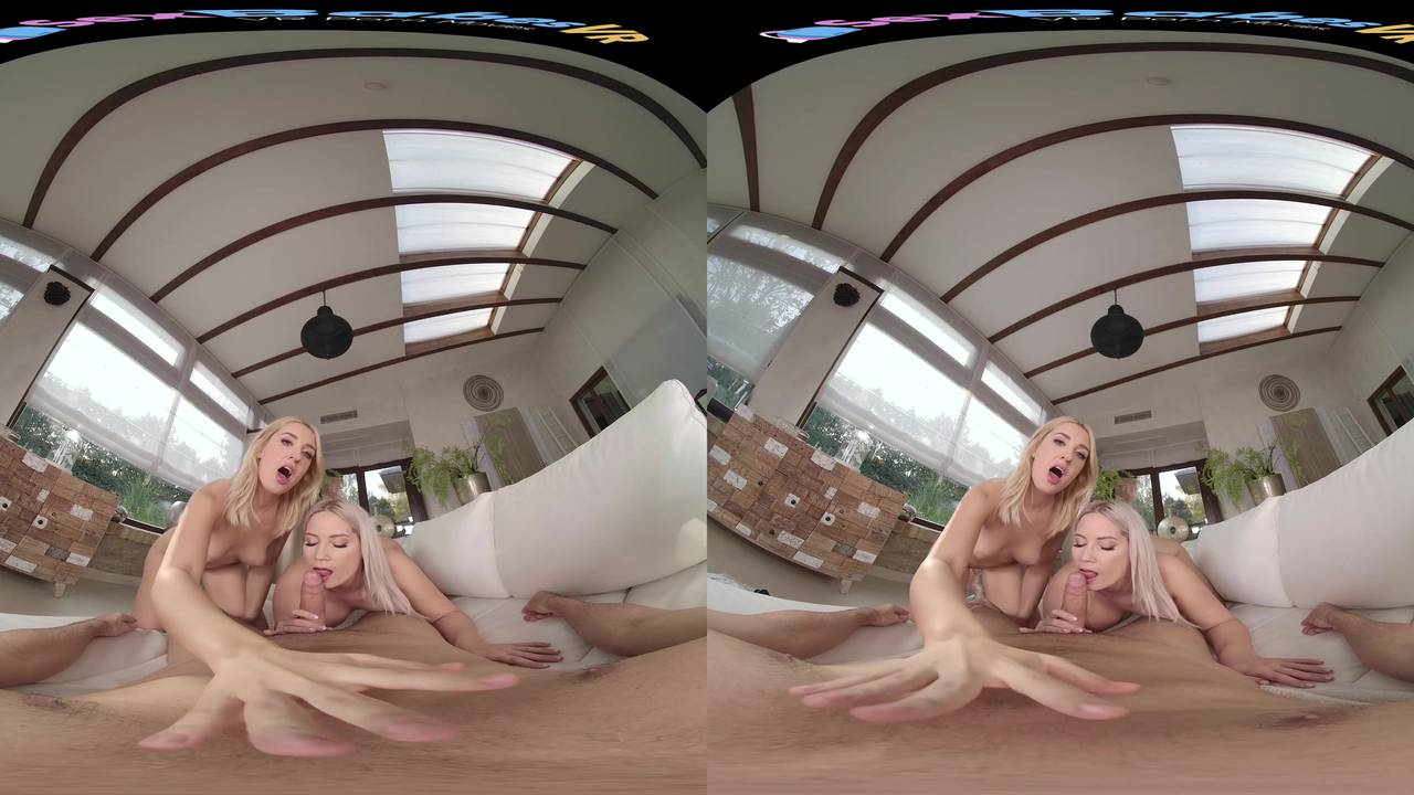 Sharon White and Sofi Otis explode with desire, mixing pleasure and sensual games, their bodies igniting in a raw fuck until the cumshot on her big tits.