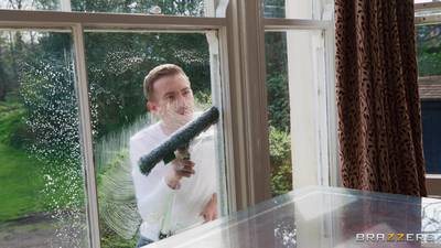 Blonde MILF Kayla Wild hires Danny D and Xander to clean her windows. While cleaning, they see horny Kayla masturbate so she invites them in to fuck her!