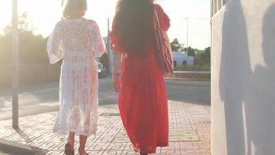 A brunette and a blonde, Alissa and Mila, walk hand in hand with their boobies and pussy out, in this video. They sit and we can watch how tight they are.
