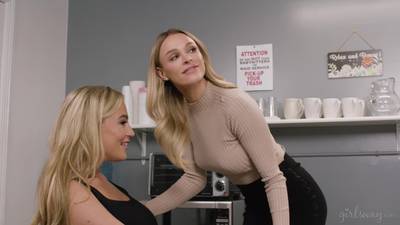 Emma Hix has had a crush on her MILF co-worker Blake Blossom and she finally got the courage to kiss her in the break room. It escalates into them fucking