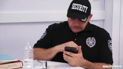 Willow Ryder, wearing a small skirt, drops her money in front of the security guard. She can't pick it up so he helps her but all she wants is his thick cock