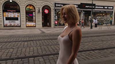 The blonde we see walking so sexy in the streets is called Chloe, and we'd like to know what you'd do if you saw her like that, with her tits out all over the place.