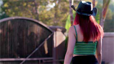 Kelly Caprice, redhead cowgirl with big tits, dominates her cowboy
