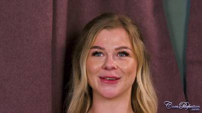 Lil Babe Lou, hot blonde, sucks cock like a goddess in a casting porno. She gets a facial cumshot after getting fucked hard!