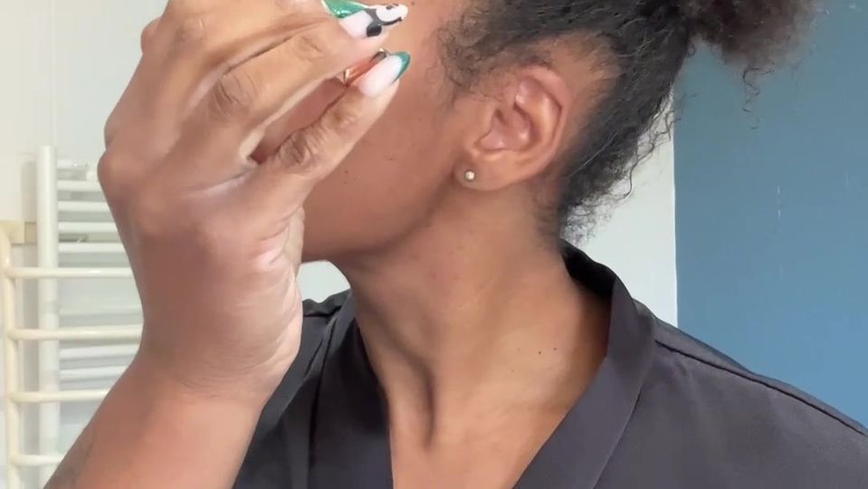 Prisca, a busty black babe in stockings, watches you while sucking hard in POV. A very hot video where her tits and mouth will drive you crazy!