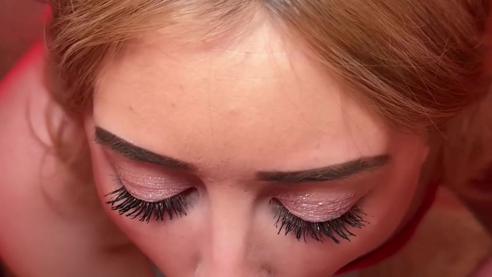 Blonde on her knees sucks this cock in POV, moaning as she gets penetrated in the ass, they cum inside and she begs for more, all dirty and horny.