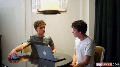 Older stepbro is trying to help his stepbrother with his project but they get distracted with each others cock! Older stepbro gets his dick sucked and fucks him