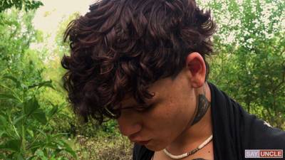 This twink brunette latino is horny man! He starts sucking his friend's cock then two more arrive and gets on his knees to suck them all