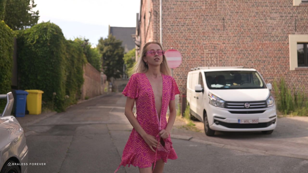 Bernie is happy with her body, despite her small breasts and tight pussy, she shows them freely while she walks around in the sun.