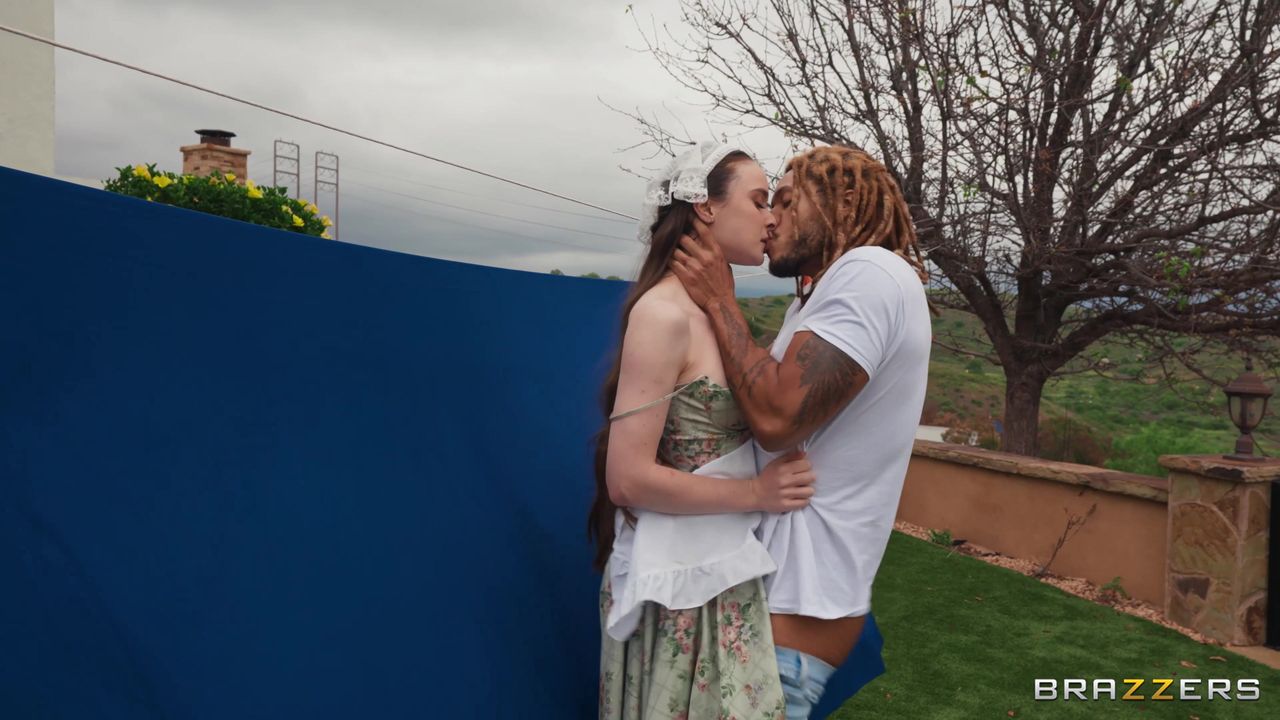 Perfect trad wife Hazel Moore feeds Charles Dera, then sneaks outside for neighbor Derek Savage's big black cock, getting her tight pussy licked then fucked