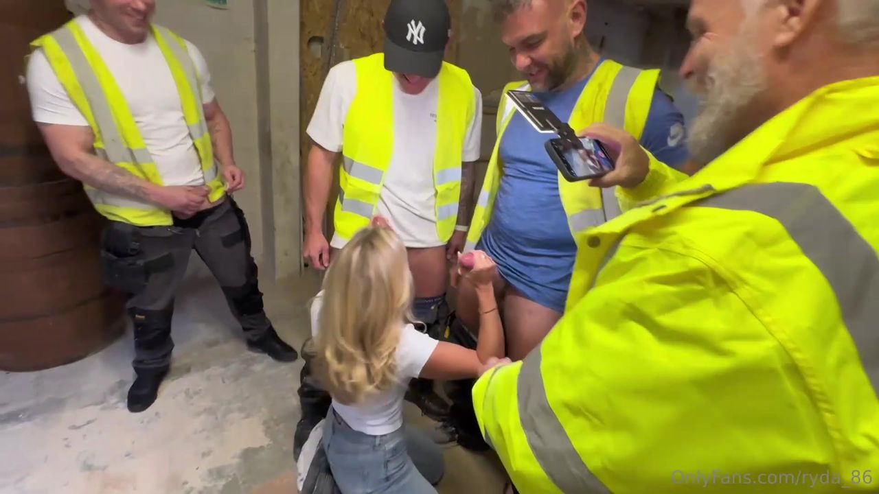 Bonnie Blue gets mercilessly pounded by workers in a gangbang. Her pussy and ass take hard cocks for a thick hot bukkake.