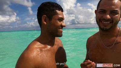 After meeting each other in the beach, these latinos come back to the hotel so they can suck each other's cock in their bed