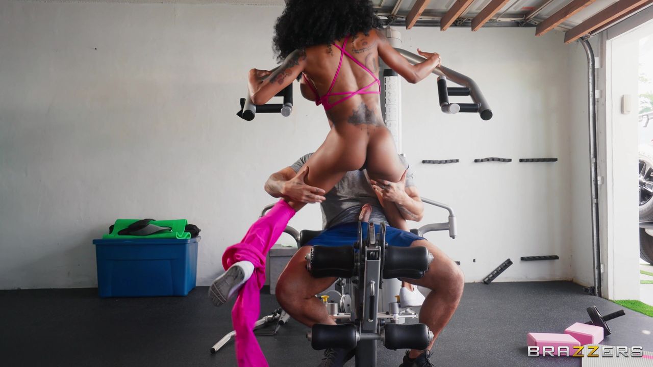 Sarai Minx stretches provocatively in her garage, spots Mike Ox’s bouncing cock. She teases, gives him a handjob then later rides him hard