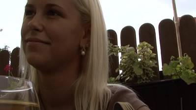 This blonde has her pussy stretched by this guy who wants to feel all of her as they fuck in the garden