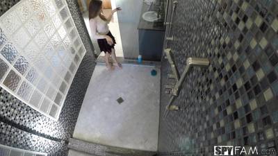 Nina is taking a shower when step-brother appears. He licks her to a frenzy so she takes his cock in her mouth and pussy. Uh-oh - he fills her pussy