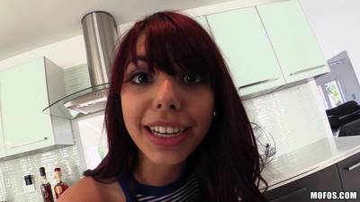 Sexy hot slut enjoying fuck in the kitchen, red hair hot slut sucking that cock before getting fucked