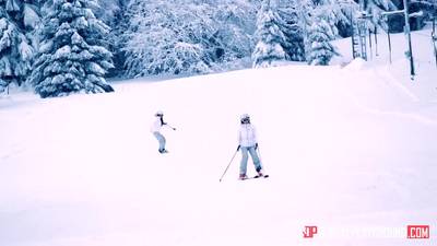 These two ski sluts want to get warm and they figure that the best way to do that is to fuck in an intense threesome