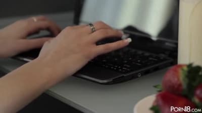 This slut is jerking off with strawberry, hot big tits slut was so horny and she jerked off with that strawberry