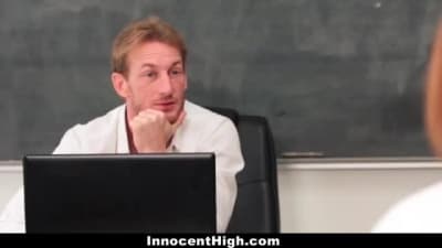 Stroppy teen is in detention for cheating on a test. When caught trying to hack her grade, she has to prove herself using mouth and pussy.