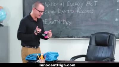When this sexy teacher rubs one out in her classroom chair, she little suspects that a student has hidden a camera to film it all...