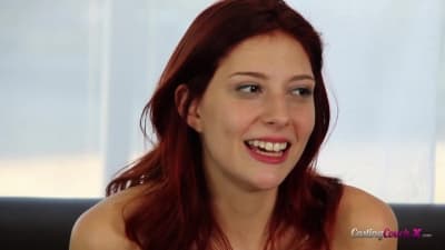 Redhead slut, Ashlyn Molloy has gone to a porn casting. She sits completely naked on a leather couch and talks to you!