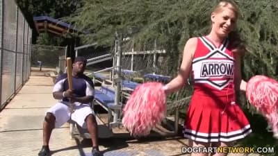 Cute cheerleader was practicing to cheer in front of a black guy who ends up fucking her and her mama. Only on dogfart.