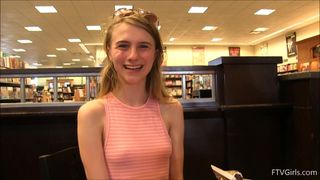 This very captivating blonde girl will go around town naked without underwear, shows herself in public and then touches herself.